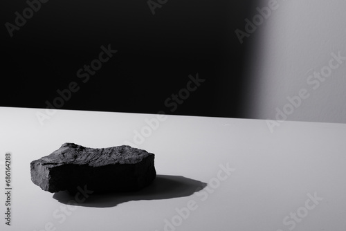 Naklejka premium Flat stone pedestal, black and white template, banner background. Minimalism...