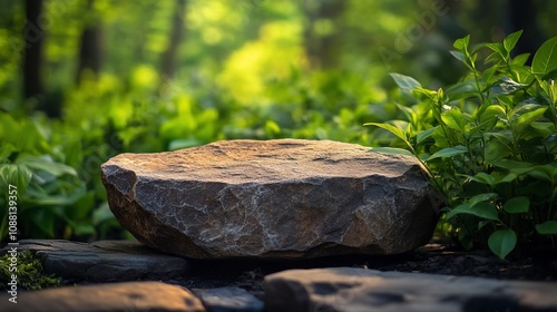 Obraz premium Flat stone surface in lush garden.