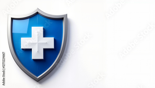 Fototapeta premium Flat-style blue shield with white cross on blank background, protection symbol