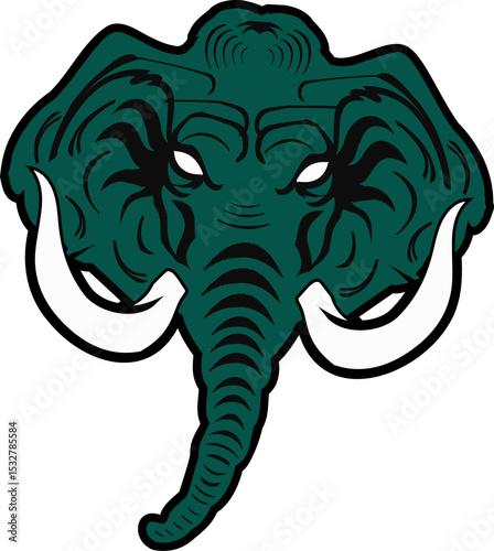 Obraz premium Flat style elephant head is featuring tusks trunk ears ornamental lines on transparent background