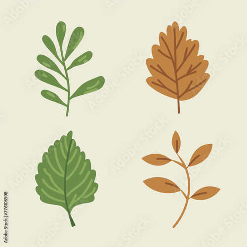 © richorzo, Fototapeta premium Flat style green leaves collection