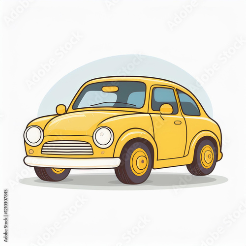 © hardvicore, Fototapeta premium Flat style illustration of cute yellow car, transport. Isolated white backdrop. Cartoon art.