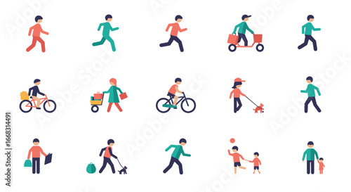 © Ophelia, Naklejka premium Flat style people performing daily activities with family and pets