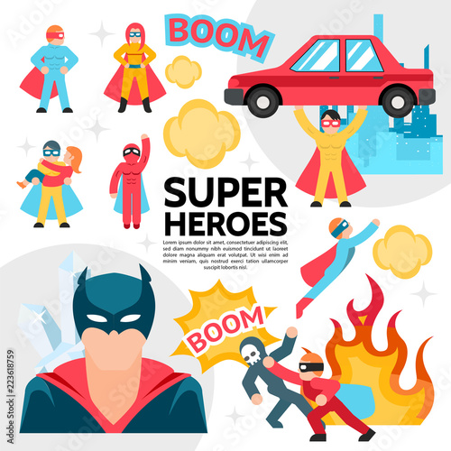 © K3Star, Fototapeta premium Flat Superheroes Template