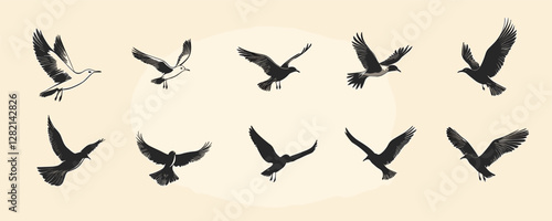 Naklejka premium Flat vector bird silhouettes icons set – flying birds illustration.