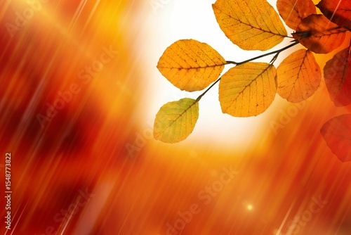 Fototapeta premium Flat vector branch with yellow and orange leaves is emerging against warm...