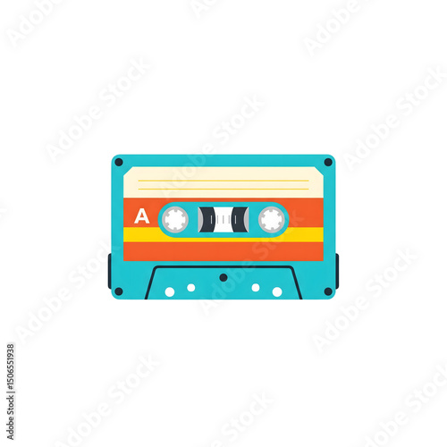 Obraz premium Flat vector clipart of a retro cassette tape, colorful and minimal, on solid white background