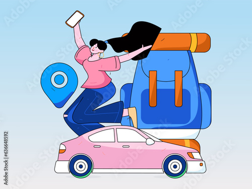 © Lyn Lee, Naklejka premium Flat vector concept operation hand-drawn illustration of people taking a taxi