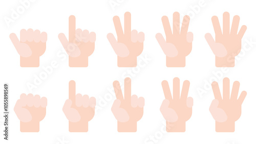 © Nutthone, Obraz premium Flat vector Count number Spread fingers white hand