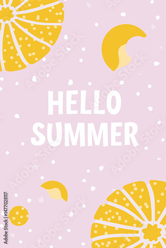 Fototapeta premium Flat vector design with the phrase 'Summer Vibes' in pink and orange text,...