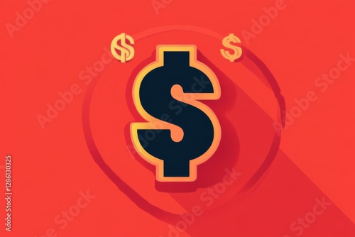 Fototapeta premium Flat vector dollar sign with a vibrant red background and bold design
