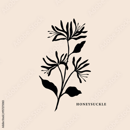 © Maria, Fototapeta premium Flat vector honeysuckle branch illustration