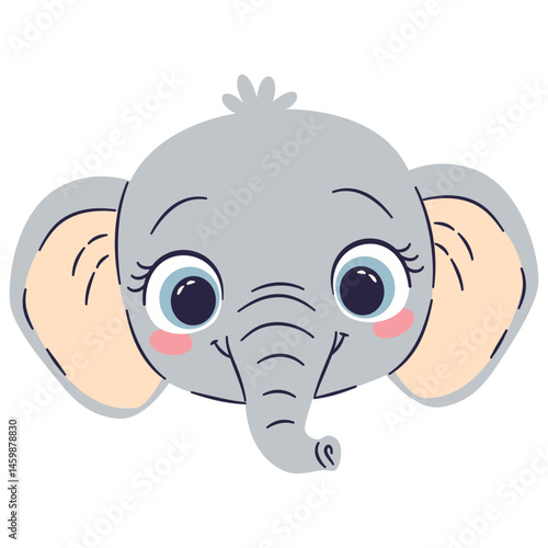 Fototapeta premium Flat vector illustration in cute cartoon children style. Elephant face on white background . Vector illustration