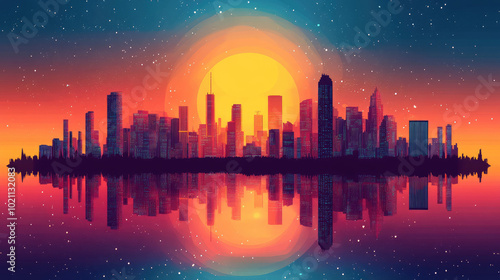 © Konzi Studio, Fototapeta premium Flat vector illustration of a city landscape