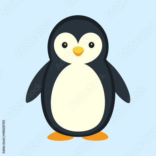 Obraz premium Flat vector illustration of a cute penguin on a light blue background