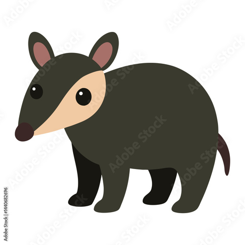 © AIGen Studio, Fototapeta premium Flat vector illustration of a cute southern long nosed armadillo standing on white background