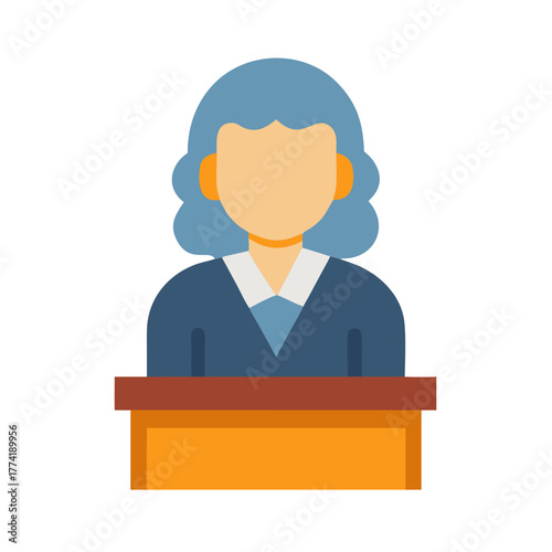 © Sharuzzaman, Obraz premium Flat vector illustration of a judge in court