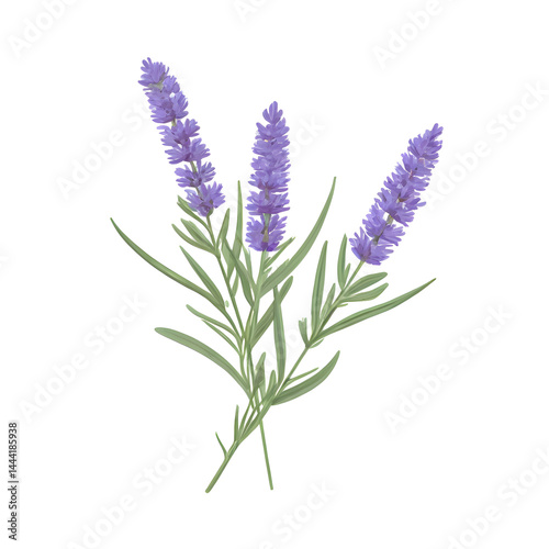 © NaturesRX, Naklejka premium Flat vector illustration of a lavender sprig, clean lines, modern design, isolated on white background,