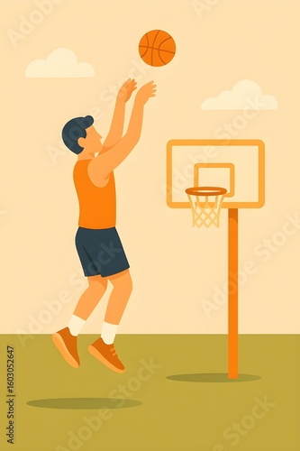 © rudy, Fototapeta premium Flat Vector Illustration of Basketball Player Shooting the Ball on Court