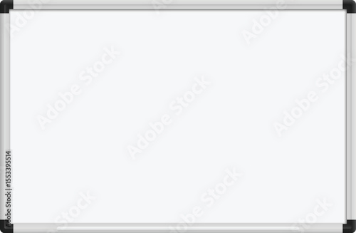 © V1oleta, Obraz premium Flat vector illustration of horizontal whiteboard with metallic frame – editable and scalable classroom board background for education, infographic, or template design