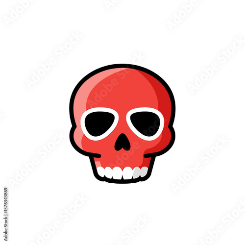 Fototapeta premium Flat vector illustration of red skull icon with bold black outline and white teeth on clean background