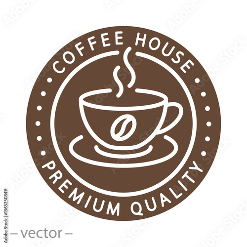 Obraz premium flat vector illustration, text premium quality coffee drink, coffee house emblem, cup icon, round logo