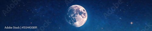Fototapeta premium Flat vector moon illustration; textured craters, scattered stars , illustration, astronomy