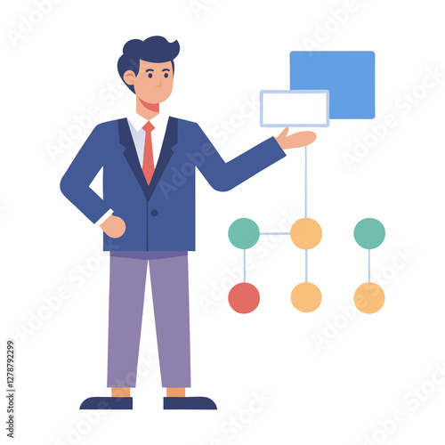 Obraz premium Flat vector strategist drives clear media strategy for marketing success