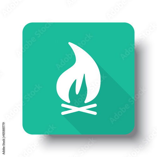 Obraz premium Flat white Bonfire web icon on green button with drop shadow