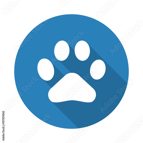 © Imagevector, Fototapeta premium Flat white Paw Print web icon with long drop shadow on blue circ