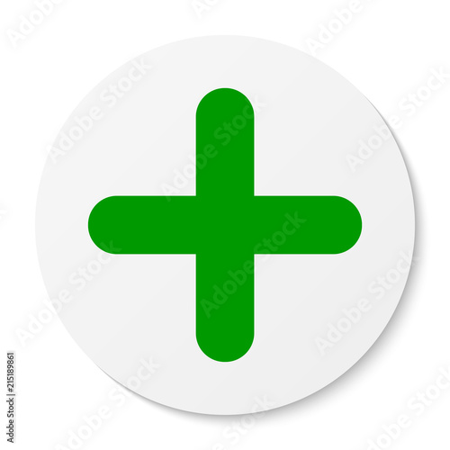 © reeel, Obraz premium Flat white round sticker plus sign icon, button. Positive symbol isolated on white background.