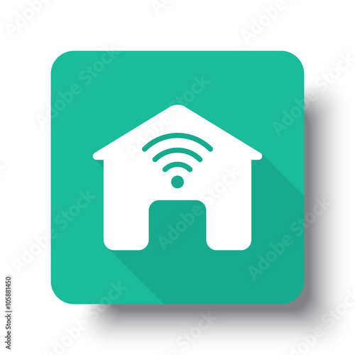 © Imagevector, Obraz premium Flat white Smart Home web icon on green button with drop shadow