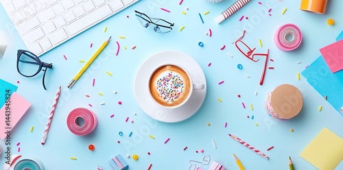 Obraz premium Flatlay Office Desk Coffee Sprinkles