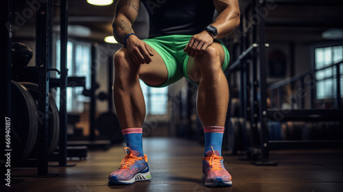 © Malika, Fototapeta premium Flaunting powerful leg muscles from rigorous gym sessions