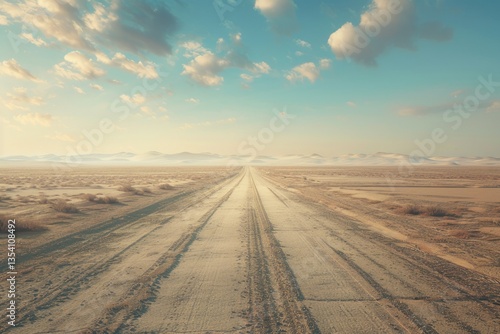 Naklejka premium Flawless Picture of Horizontal View of a Desert Road Leading to the Horizon