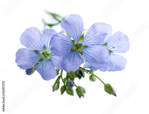 Fototapeta premium Flax flowers isolated on white background. Blue common flax, linseed or linum...