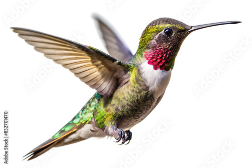 © SekhSadi, Fototapeta premium Flaying hummingbird Bird white background. AI GENERATED