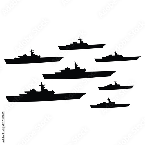 Fototapeta premium fleet-of-battleship-silhouettes-in-formation
