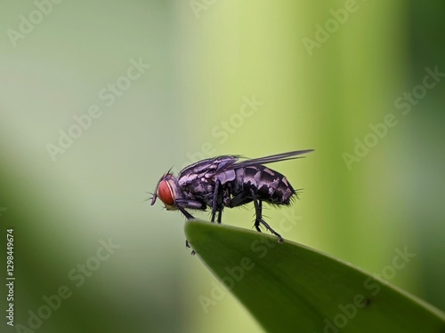 © RMX IMG, Naklejka premium Flesh flies or Sarcophaga land on leaves