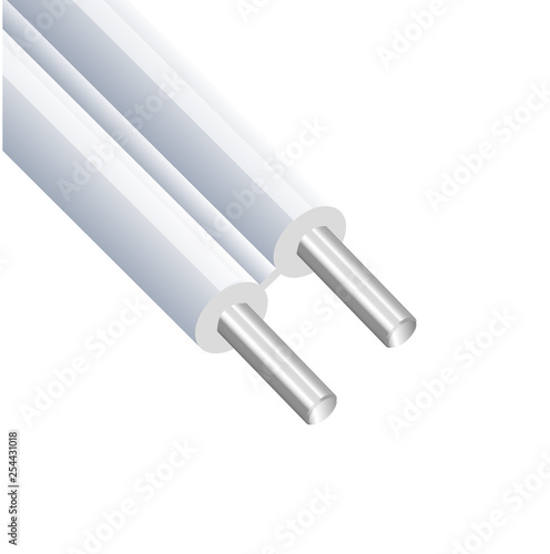 Fototapeta premium Flexible two-wire electrical aluminum cable isolated on white background....