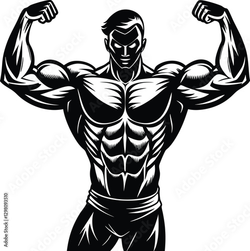 © Ahsan, Fototapeta premium Flexing Bodybuilder Mascot Silhouette.