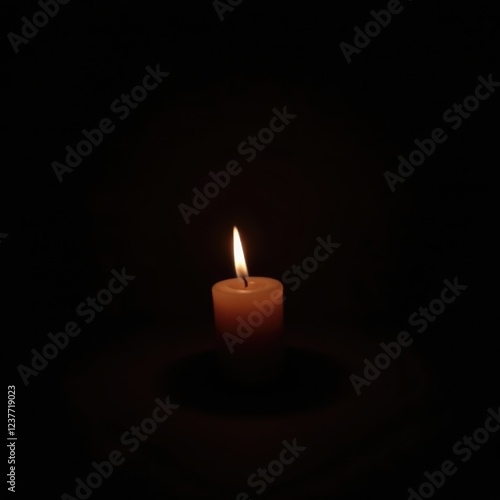 © chaiwat, Fototapeta premium Flickering candle flame against dark black background, serene, shadow, darkness