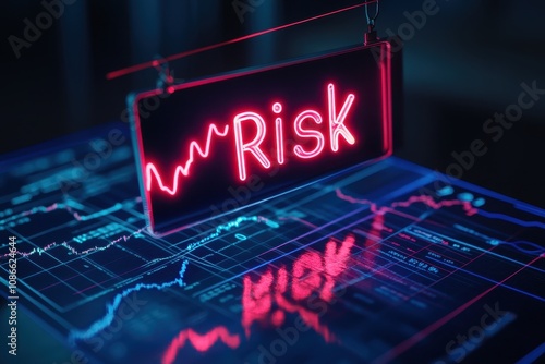 Fototapeta premium Flickering Neon Risk Sign: Highlighting Common Investing Mistakes Amid Market Volatility