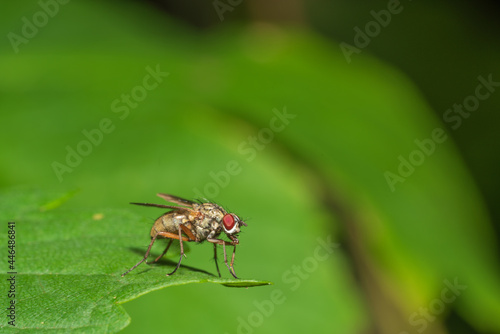 © lexpixelart, Fototapeta premium Fliege auf Blatt