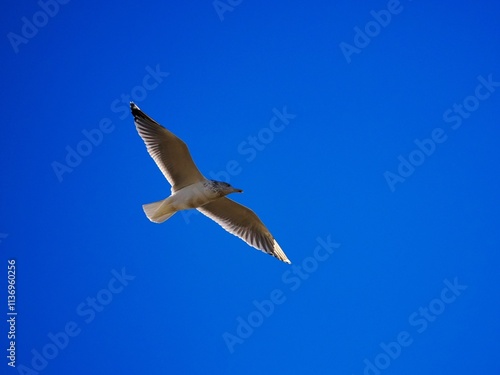 Obraz premium Fliegende Möwe (Larinae) an der niederländischen Nordsee
