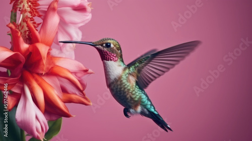 Obraz premium Fliegender Kolibri mit Blume