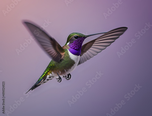 Obraz premium fliegender Kolibri vor lila Hintergrund
