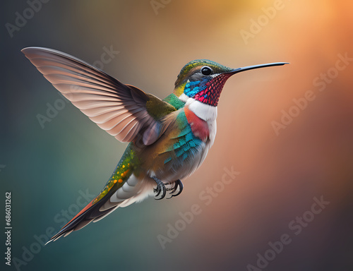 © DeMitoBella, Fototapeta premium fliegender roter Kolibri