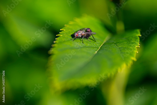 © Aleksander Nordaas, Fototapeta premium Flies mating - macro detail closeup