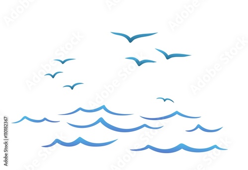 © designer_an, Obraz premium Flight birds over the ocean.